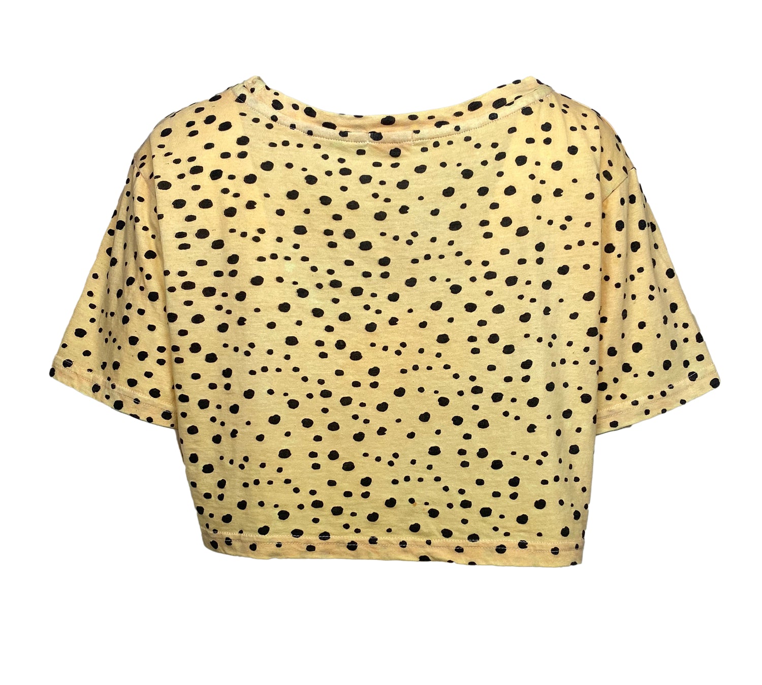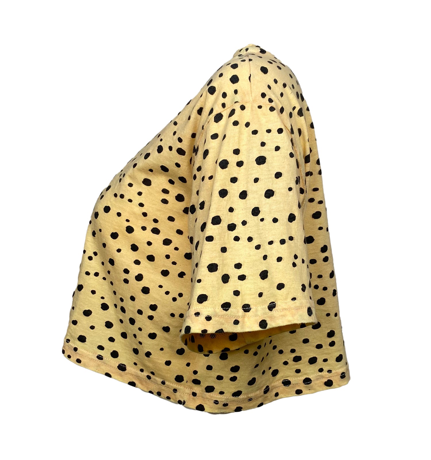This classic cropped t shirt is a summer favorite! It is made out of quality 100% cotton and hand dyed with an eye catching wild print. The neckline is conservative and the shape a boxy modern style. Great for tucking in an overnight bag to travel easy!