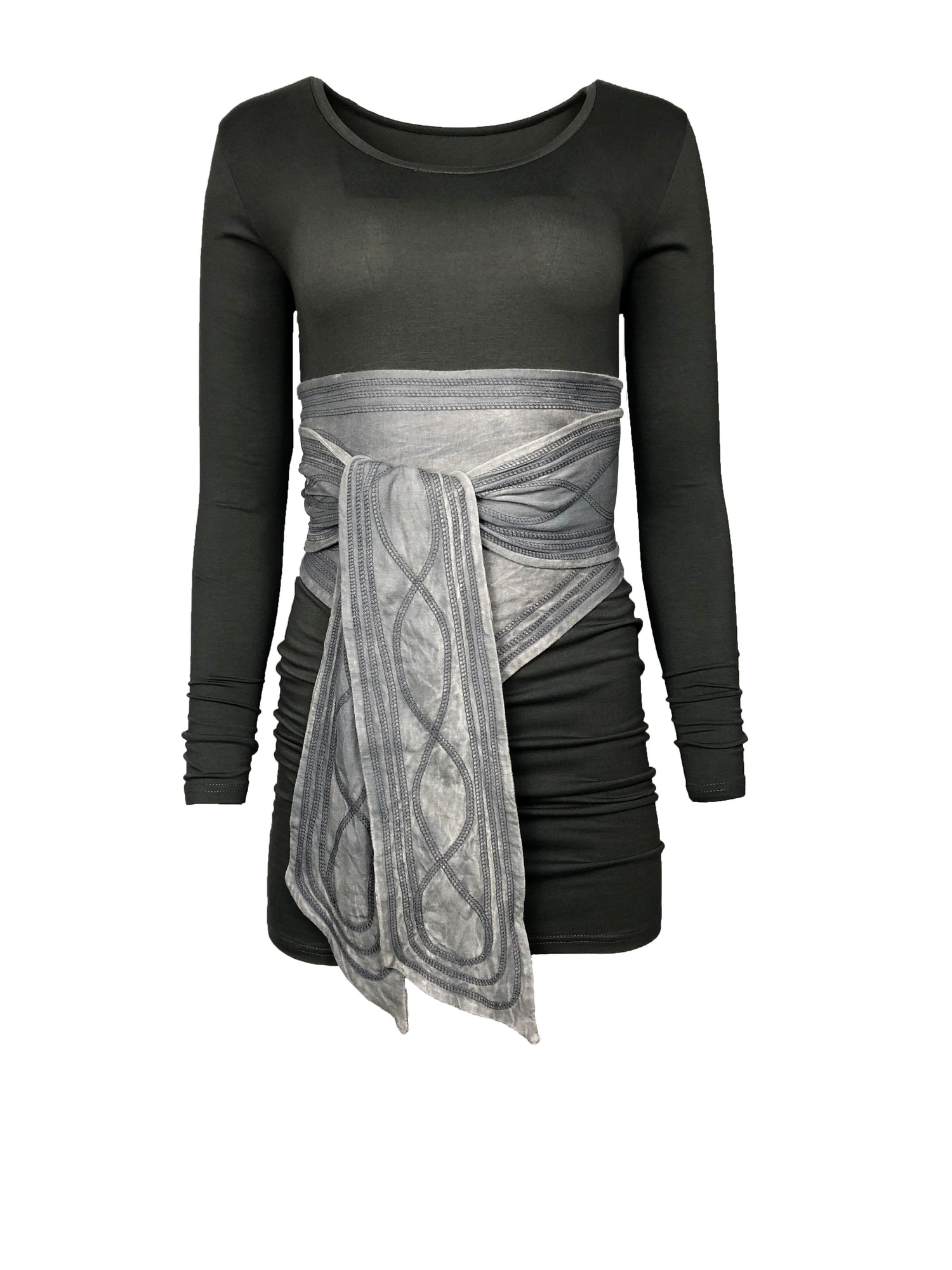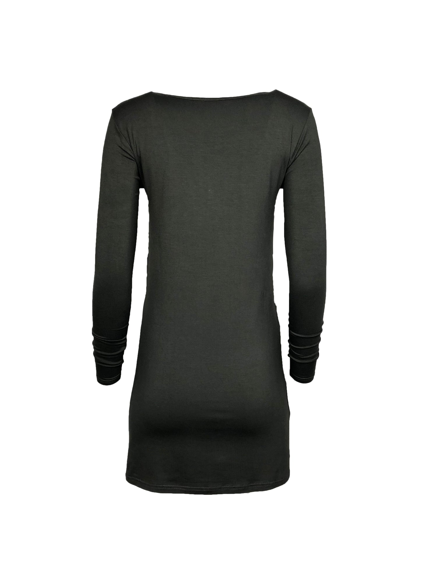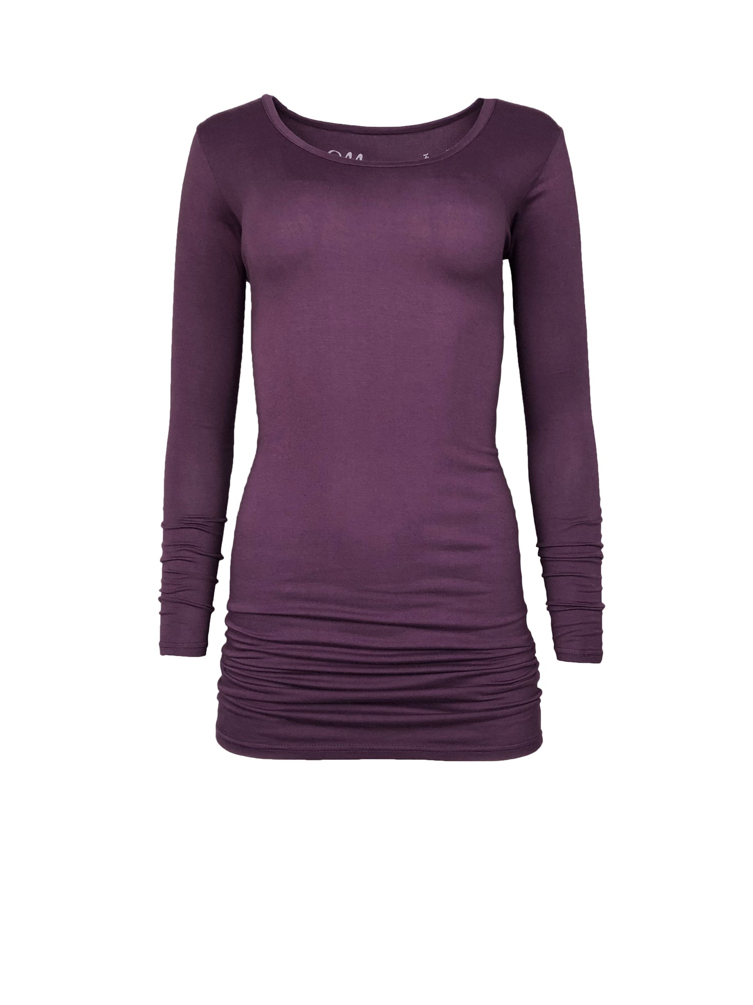 Minimal. Timeless. Simple. Are you looking for a dress which can be worn time after time and always looks different? Which is always in style? Which can simplify your life and your style? This is a classic long sleeve mini dress with a lovely boat neckline. Made of our luxurious bamboo and organic cotton fabric, it is beautifully crafted and available in many colors. We love the versatility of this dress because it absolutely conforms to the aesthetic of the person wearing it. The simplicity of this design is the starting point, then shop your wardrobe for accessories or let us help you - for example, our S A S H belt is used in the photos. Think hats, jewellery, scarves and jackets - the possibilities are endless. To make this dress an even more valuable acquisition scrunch it up to hip length and wear it is a top with a skirt, like our BRIDGE, leggings or jeans. This is a blank canvas waiting for your creative input!
