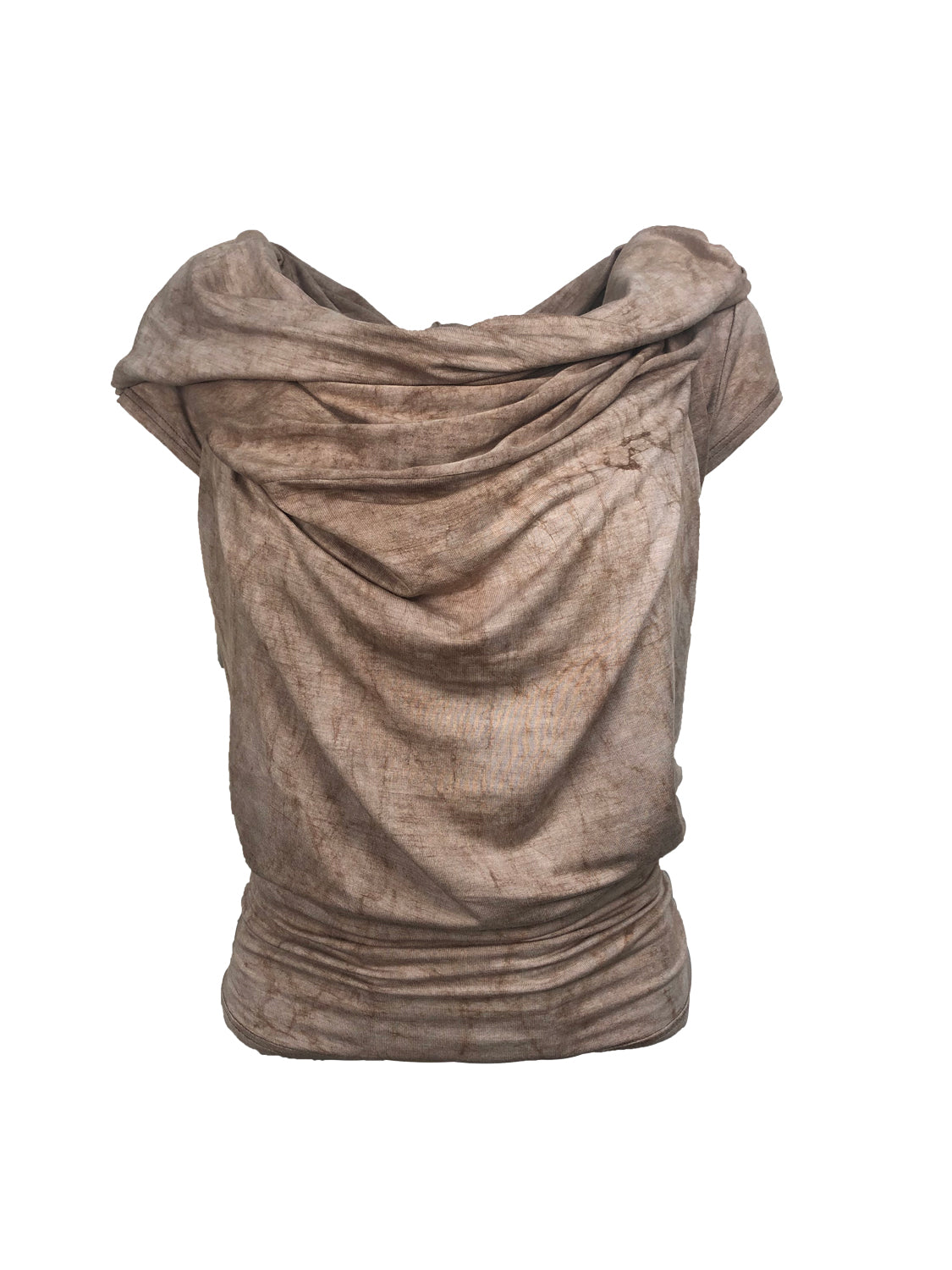 The beautiful batik dye of this two piece set is showcased by the oversized cowl neck. The cap sleeves and relaxed fit through the body make this a perfect outfit for hot days. If you find that the weather is still too hot, then you can just wear the bandeau, and save the top to wear over a sleeveless dress when the evening turns cooler. There are so many ways that you will be able to style this duo, together or singly, making them a great addition to any summer or travel wardrobe.