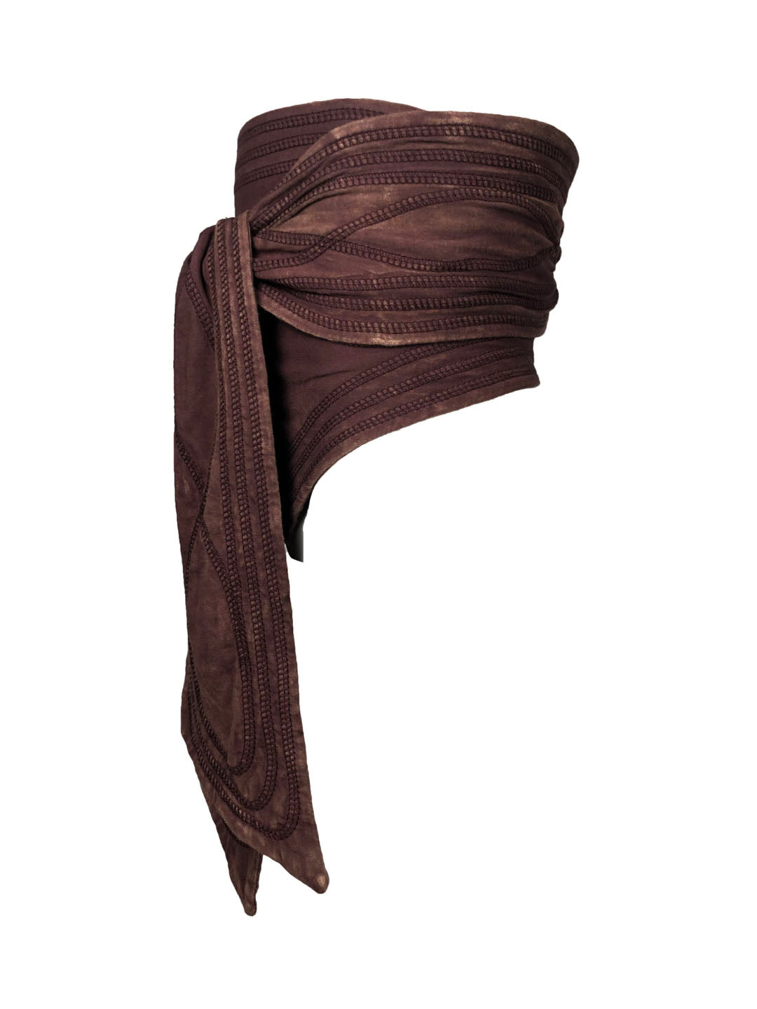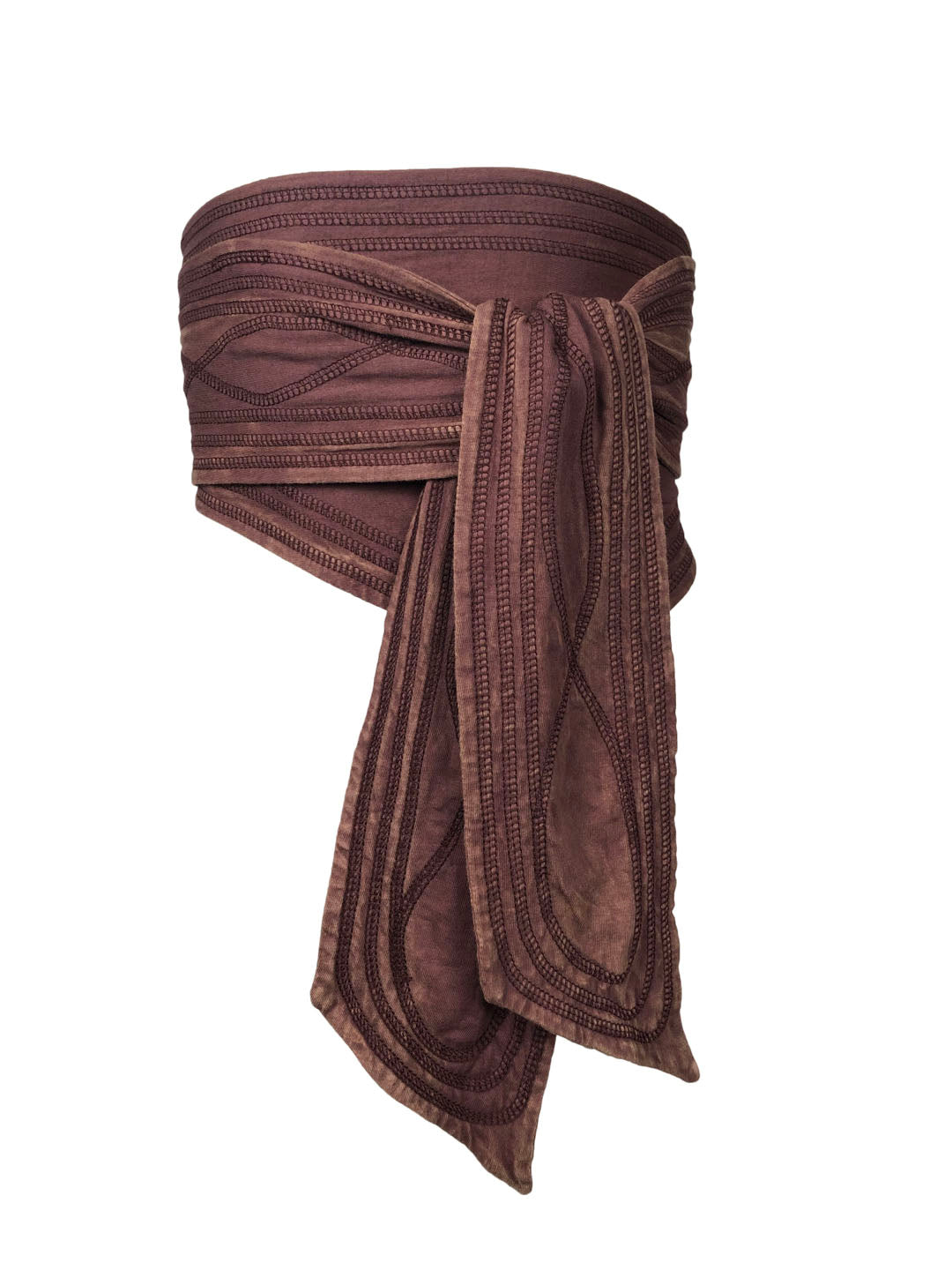 This embroidered obi-style belt has continuous stitching holding the two layers together. It adorns and accents many pieces in our collection. It can be worn with the point to the front, side or back, tied once or twice or with the ends tucked out of sight as you wrap it around. Wear it on your waist or hips, it makes you look amazing. One in every colour would definitely expand your wardrobe capabilities!